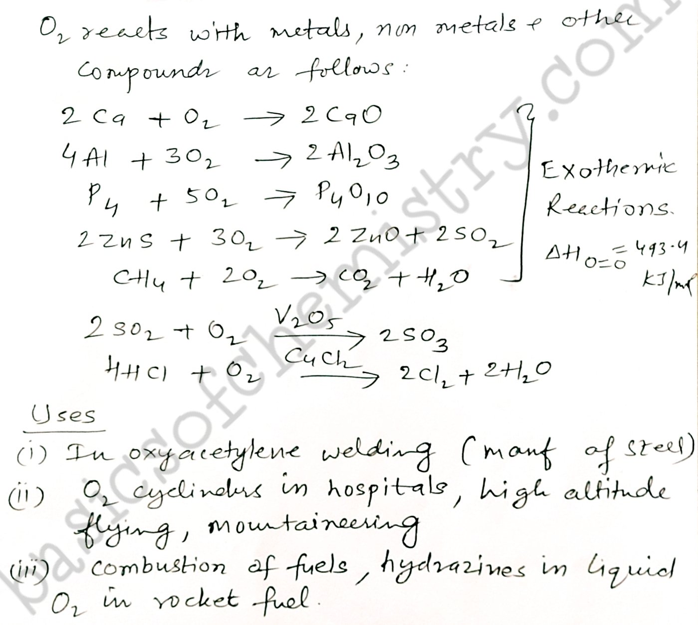 Uses of Dioxygen O2 group 16 elements p block elements class 12