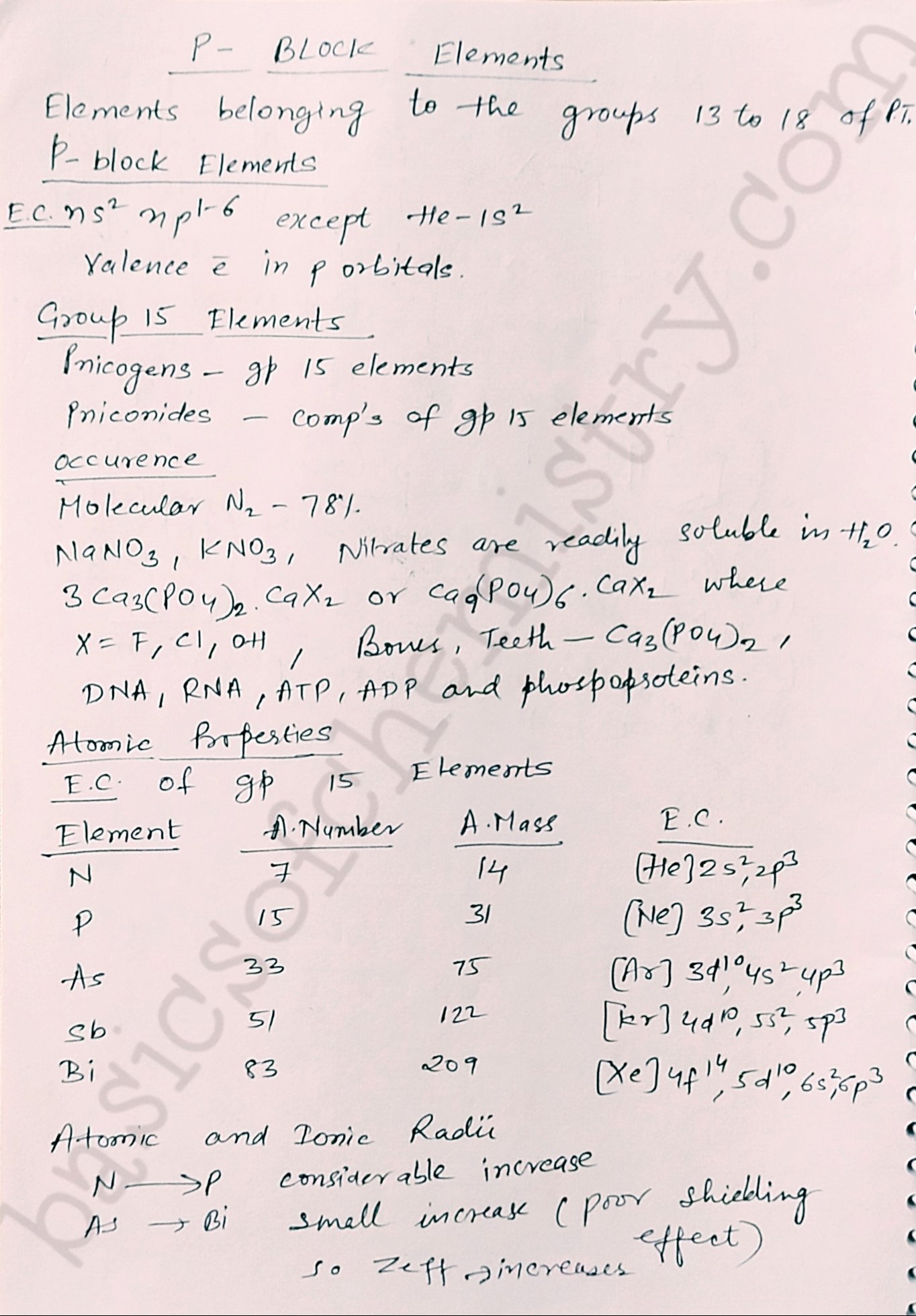 Atomic and ionic radii of group 15 elements p block elements