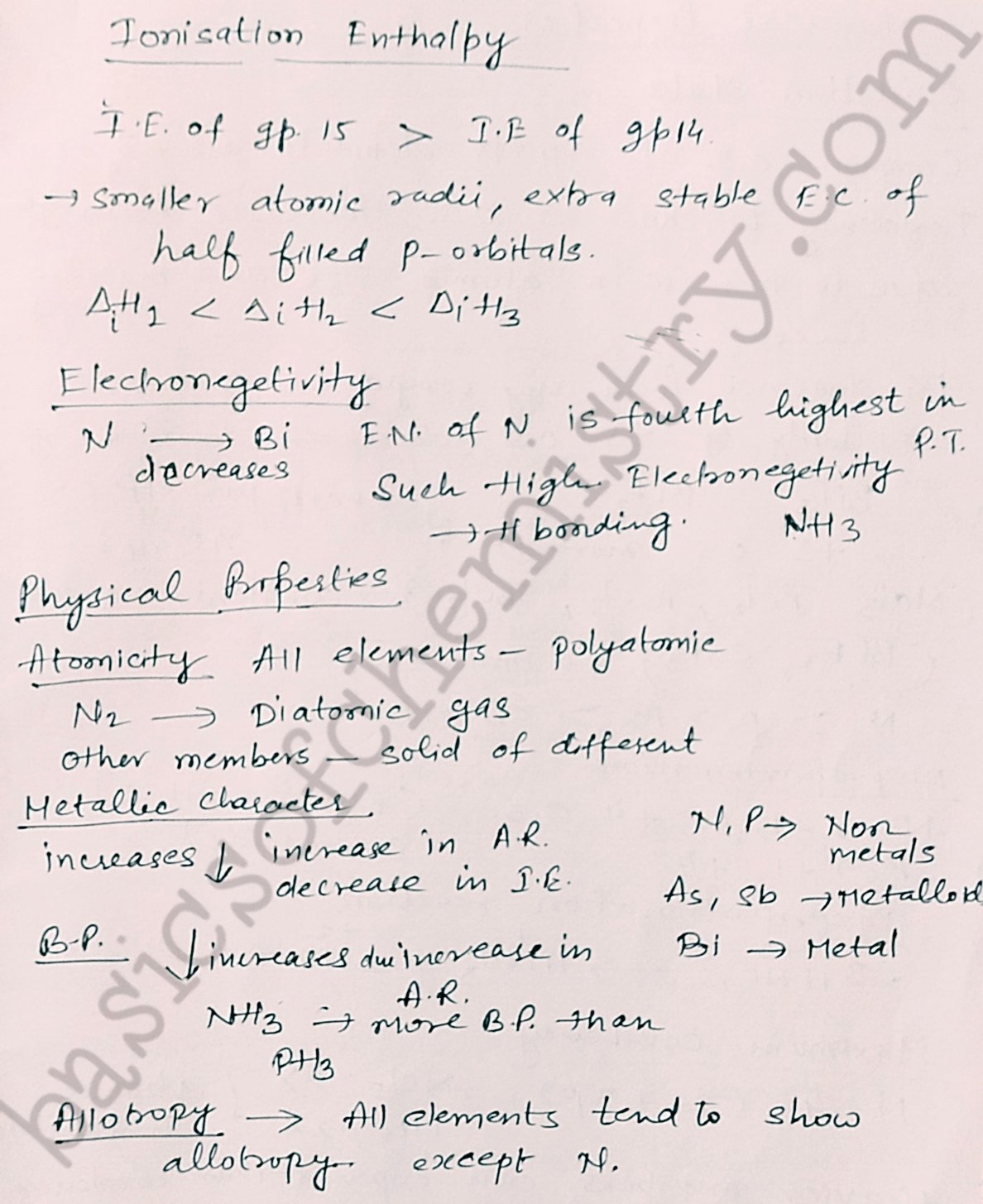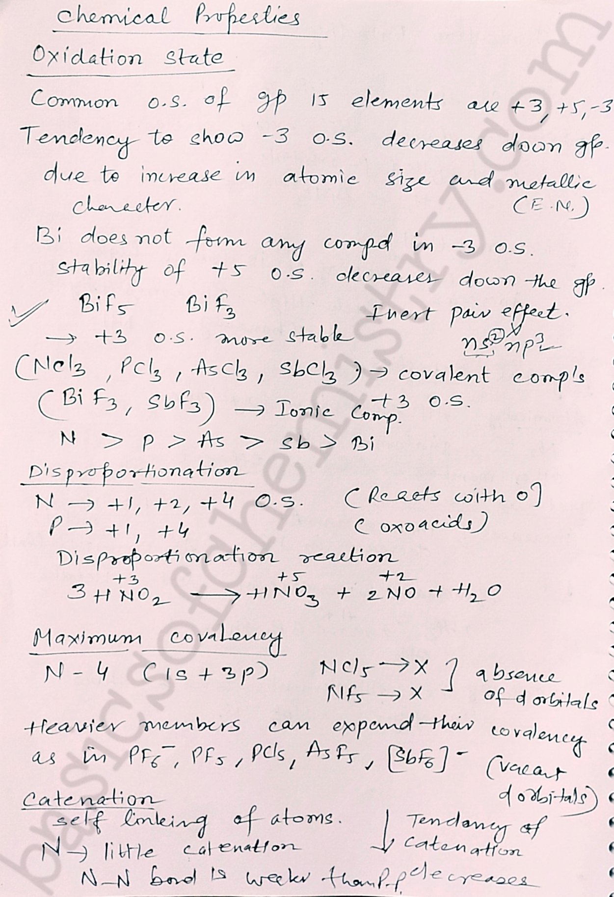 Notes on group 15 elements p block elements class 12 properties