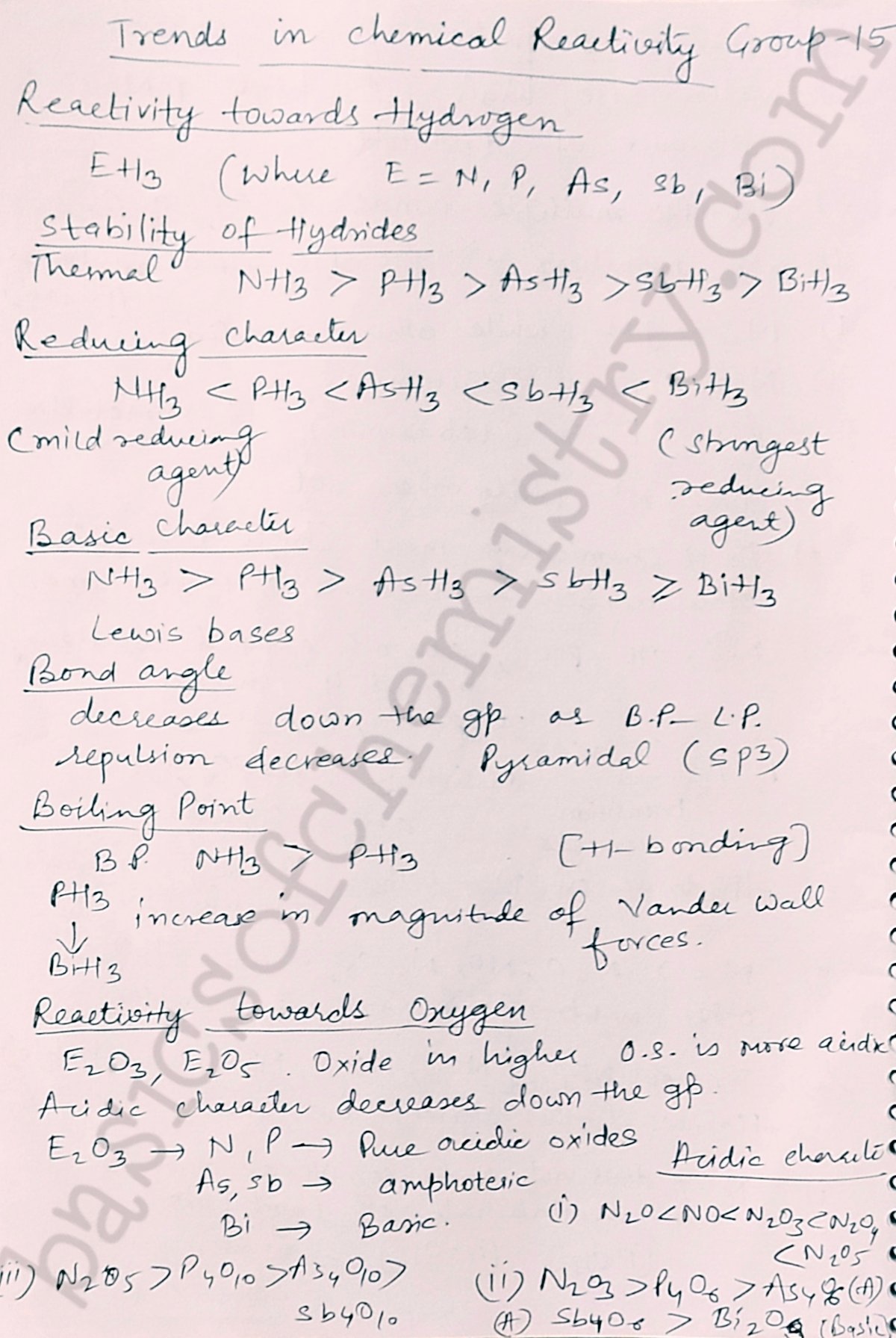 Chemical properties of group 15 elements
