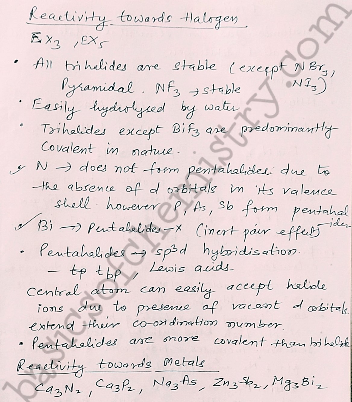 But this Bi does not form any compound in -3 oxidation state. As we go down the group the stability of lower oxidation State becomes more stable due to inert pair effect therefore the stability of plus 3 oxidation State increases down the group.