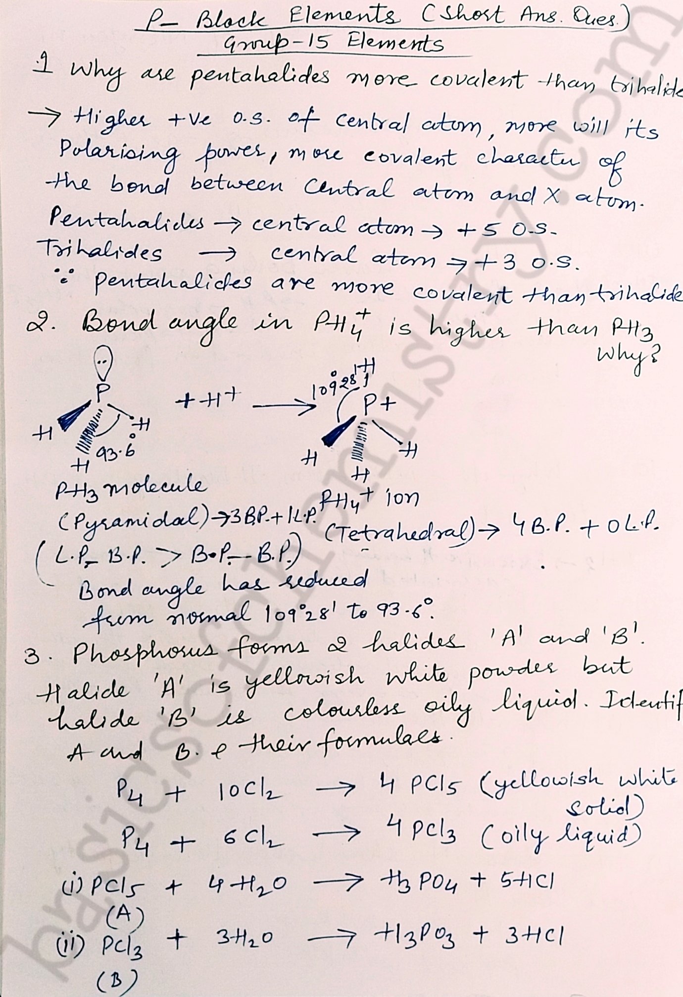 P block elements group 15 elements NCERT exercise and PVQS