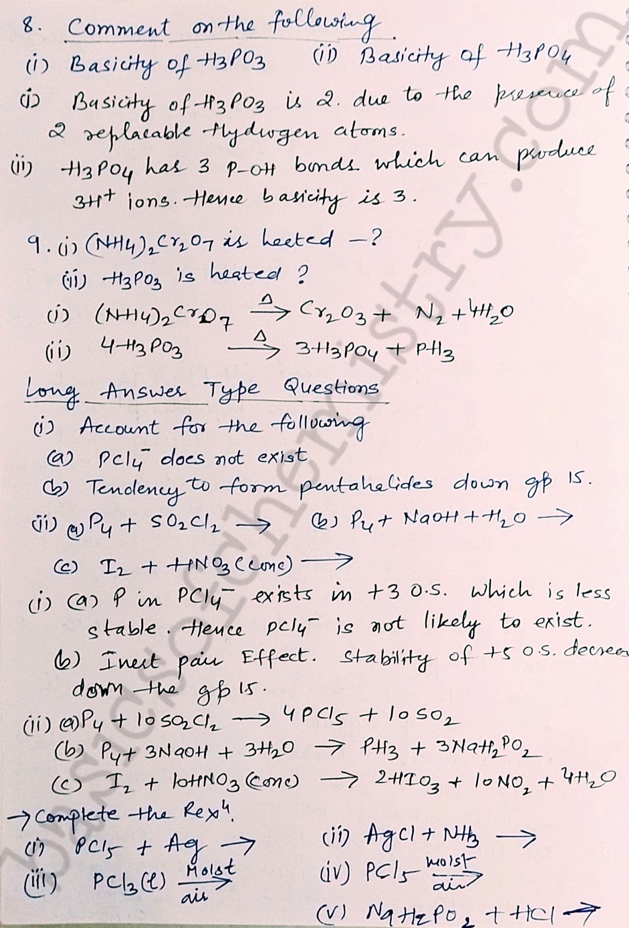 Notes on NCERT exercise and PVQS group 15 Elements P block elements Class 12